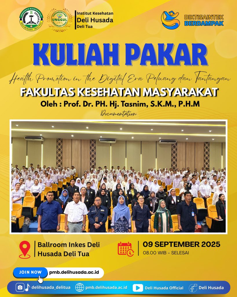 Deli Tua – Fakultas Kesehatan Masyarakat Institut Kesehatan Deli Husada Deli Tua menggelar kegiatan Kuliah Pakar dengan tema “Health Promotion ...